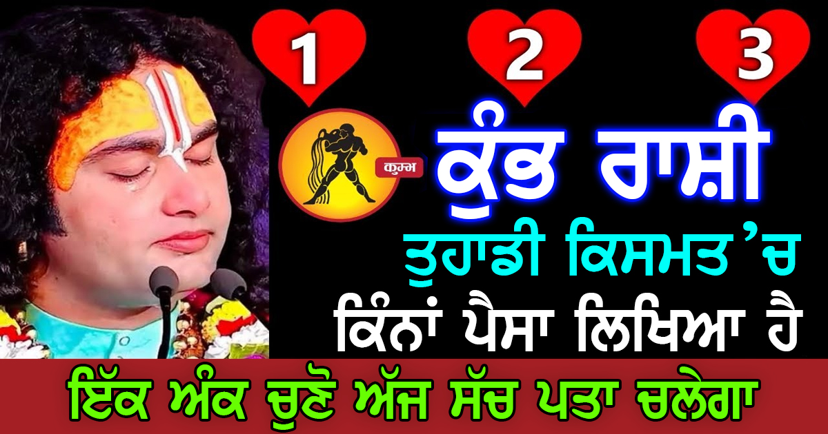 ਕੁੰਭ ਰਾਸ਼ੀ, ਤੁਹਾਡੀ ਕਿਸਮਤ ਵਿੱਚ ਕਿੰਨਾ ਪੈਸਾ ਲਿਖਿਆ ਹੈ, ਇੱਕ ਨੰਬਰ ਚੁਣੋ, ਅੱਜ ਸੱਚਾਈ ਦਾ ਪਤਾ ਲੱਗੇਗਾ
